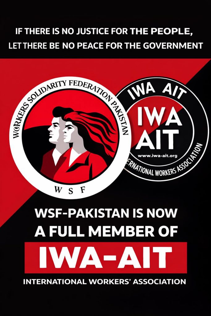 ورکرز سالیڈیرٹی فیڈریشن پاکستان (WSF-Pakistan) اب عالمی محنت کش تحریک کے انقلابی محاذ انٹرنیشنل ورکرز ایسوسی ایشن (IWA-AIT) کی مکمل رکن تنظیم بن چکی ہے.