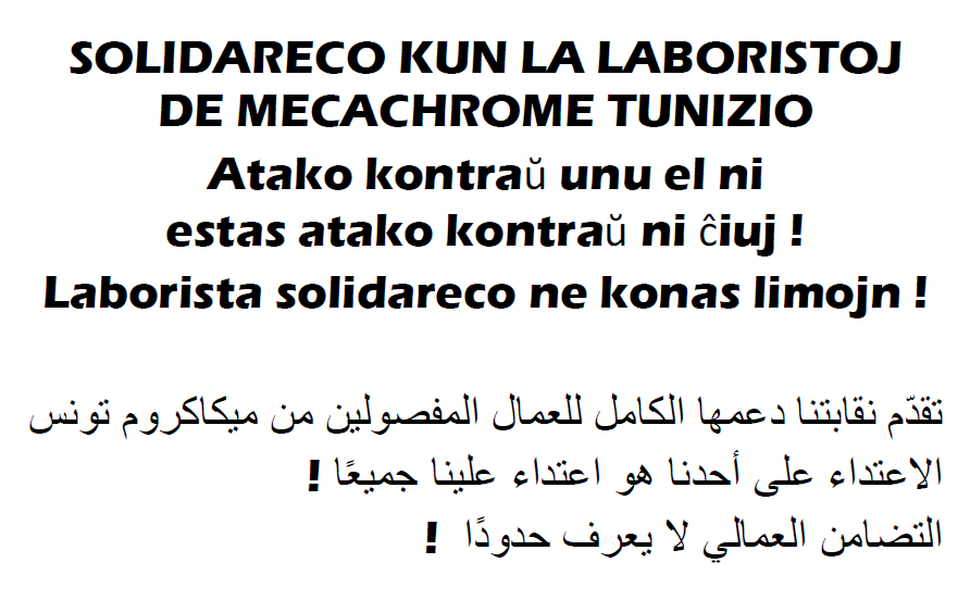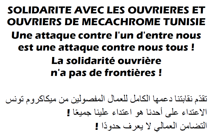 رسالة دعم للرفاق التونسيين في ميكاكروم فوشانة الذين تم فصلهم بسبب الإضراب وتنظيمهم لقسم نقابي