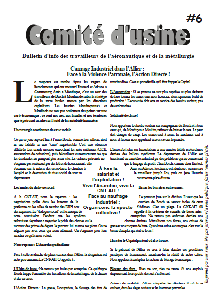 - Carnage Industriel dans l’Allier :Face à la Violence Patronale, l’Action Directe ! ( https://cnt-ait.info/2026/01/22/bosch-03/)